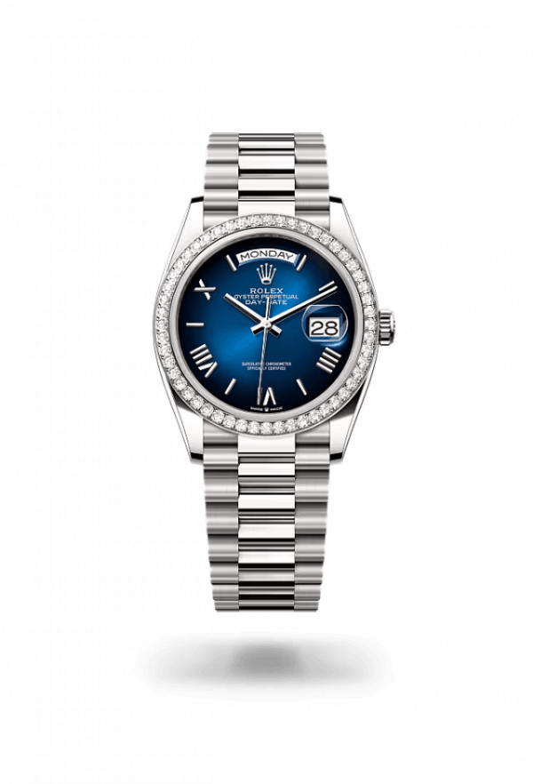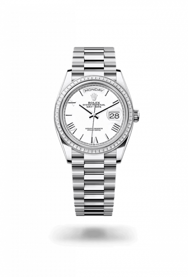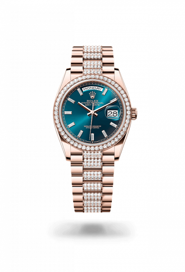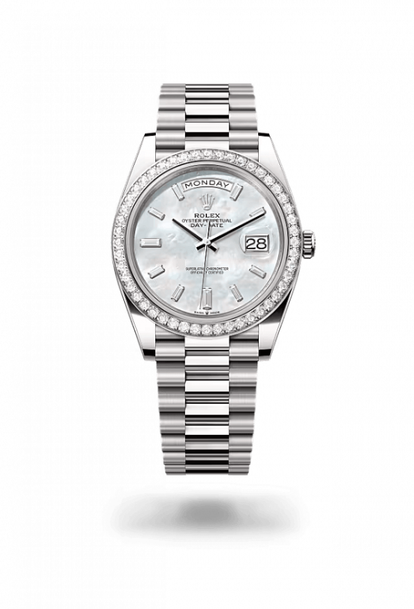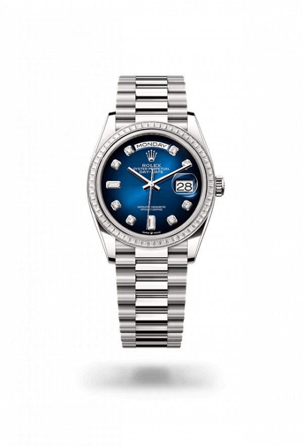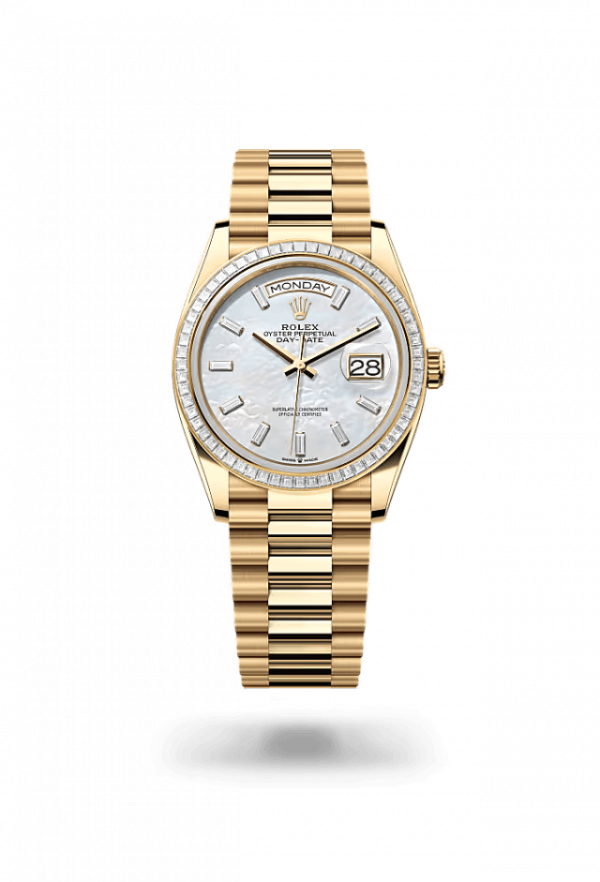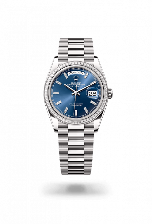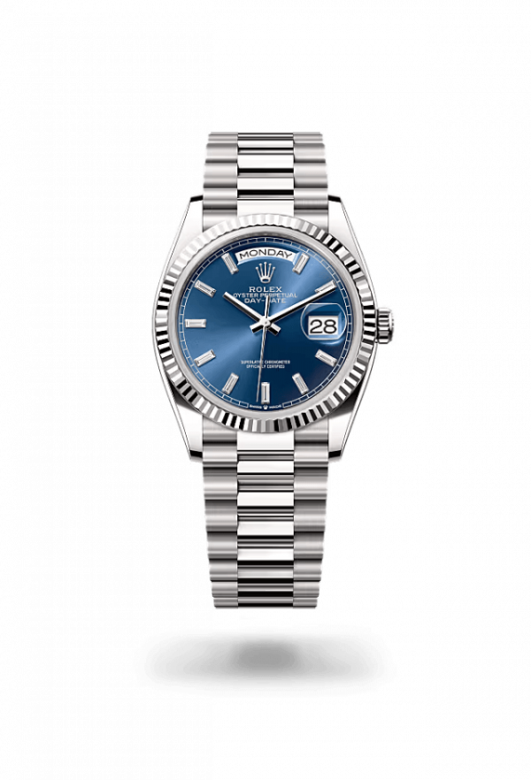 The Rolex Day-Date, often called the “President’s Watch,” is the pinnacle of luxury and sophistication. Introduced in 1956, it was the first wristwatch to display both the day and date in full on its dial. A true icon, the Day-Date is exclusively crafted from precious metals like 18ct gold or platinum, underscoring its elite status.The elegant President bracelet, designed specifically for this model, offers unparalleled comfort and style, seamlessly complementing the watch’s timeless design. With a variety of dials, including mother-of-pearl and diamond-set options, the Day-Date embodies individuality and class.Favored by world leaders, visionaries, and connoisseurs, the Rolex Day-Date stands as the ultimate symbol of prestige and success.