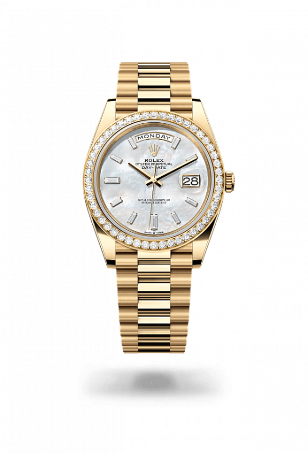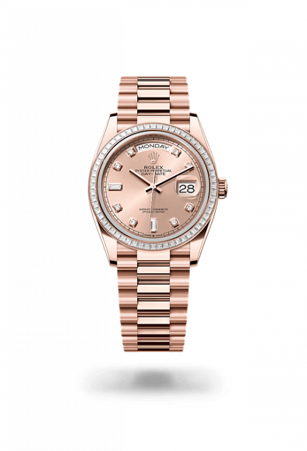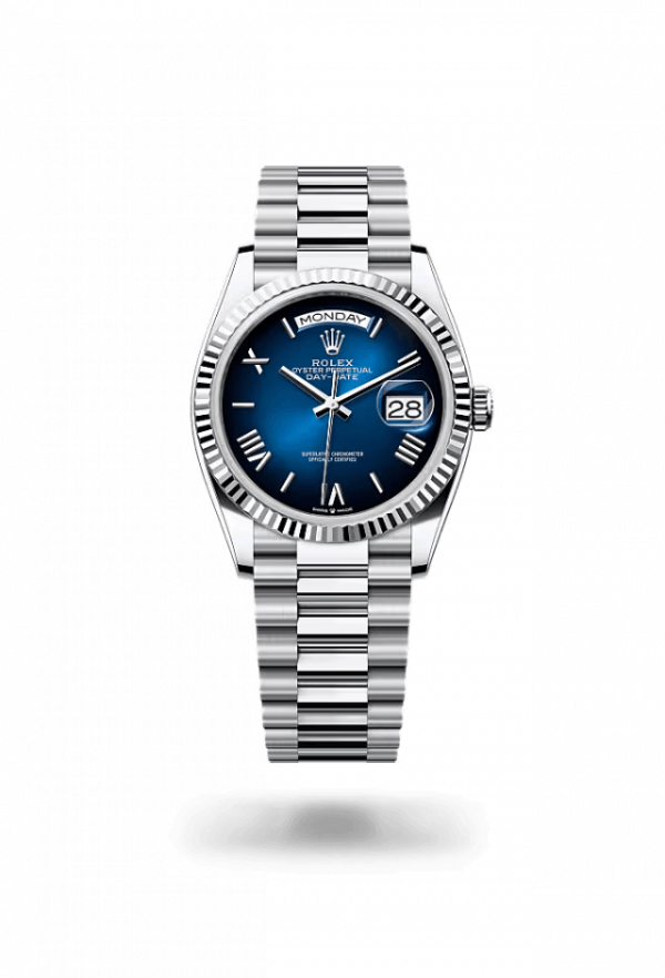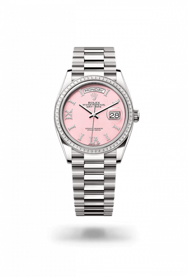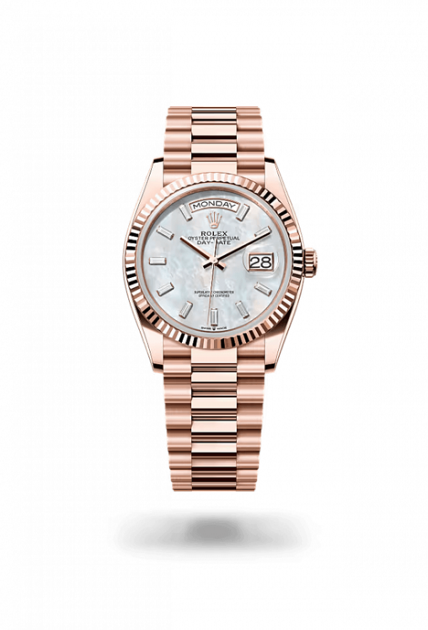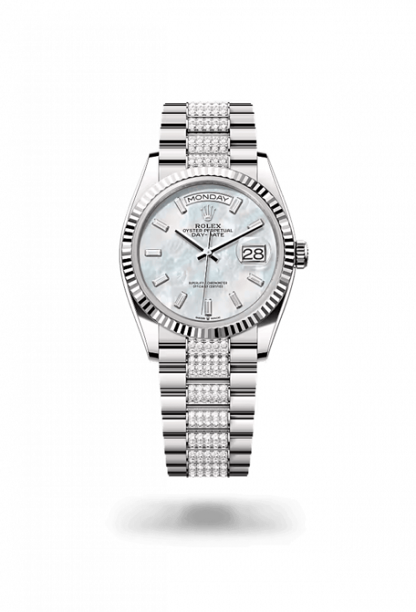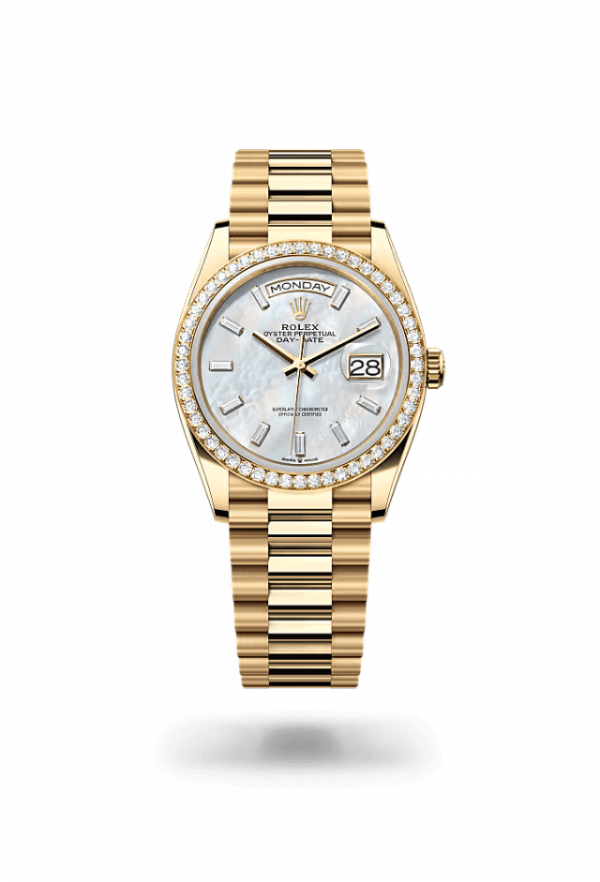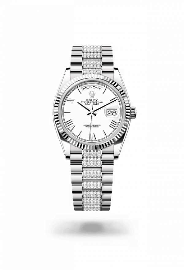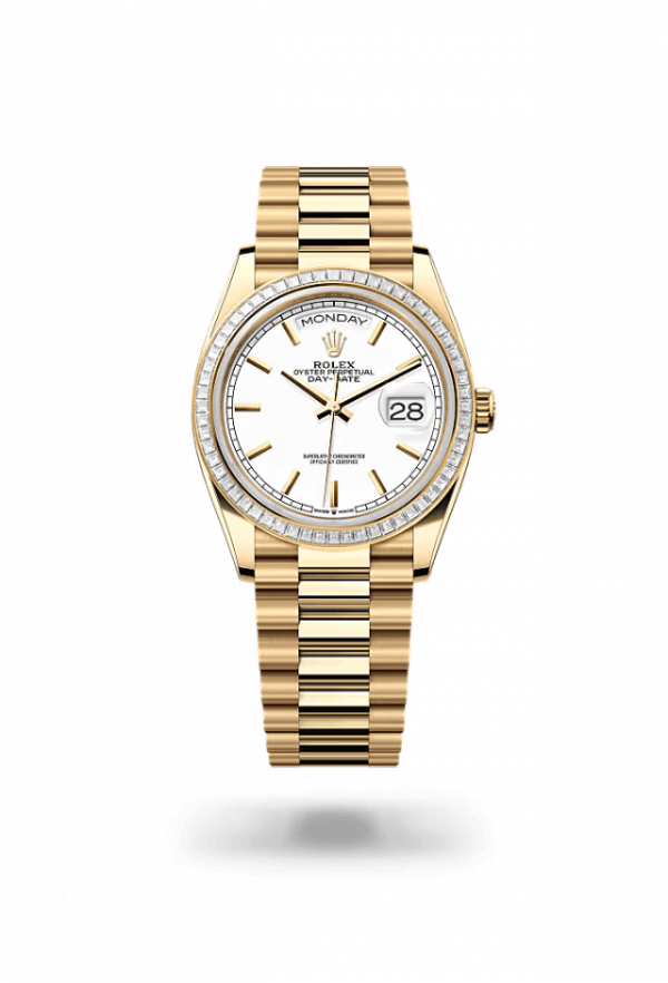 The Rolex Day-Date, often called the “President’s Watch,” is the pinnacle of luxury and sophistication. Introduced in 1956, it was the first wristwatch to display both the day and date in full on its dial. A true icon, the Day-Date is exclusively crafted from precious metals like 18ct gold or platinum, underscoring its elite status.The elegant President bracelet, designed specifically for this model, offers unparalleled comfort and style, seamlessly complementing the watch’s timeless design. With a variety of dials, including mother-of-pearl and diamond-set options, the Day-Date embodies individuality and class.Favored by world leaders, visionaries, and connoisseurs, the Rolex Day-Date stands as the ultimate symbol of prestige and success.