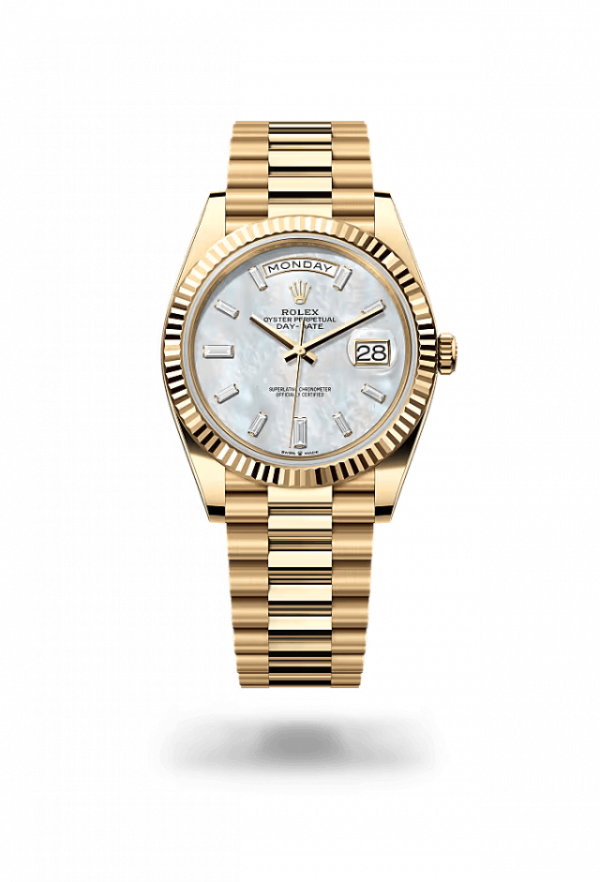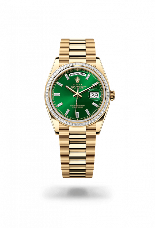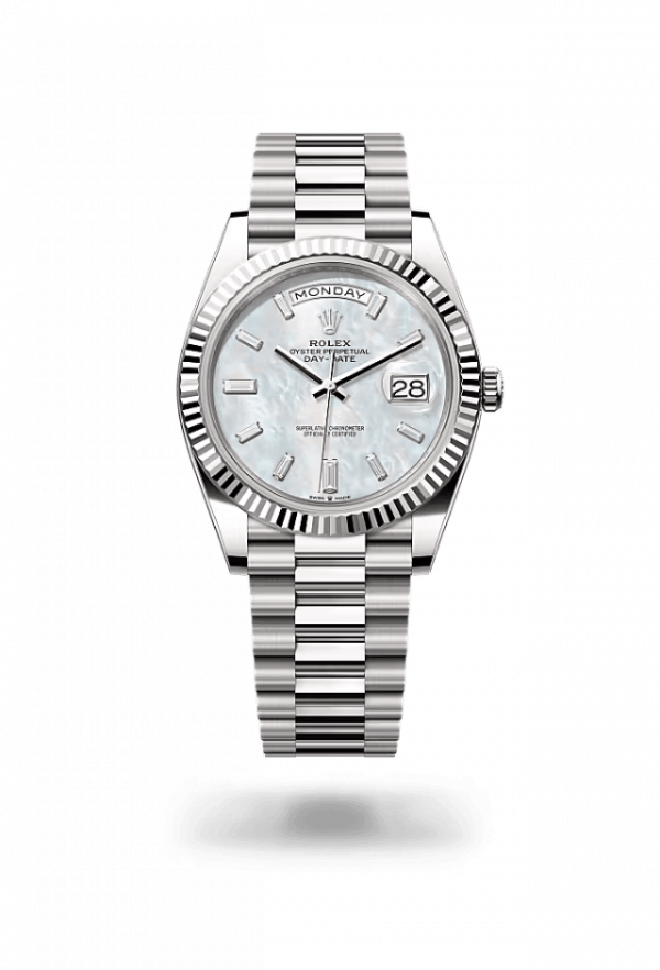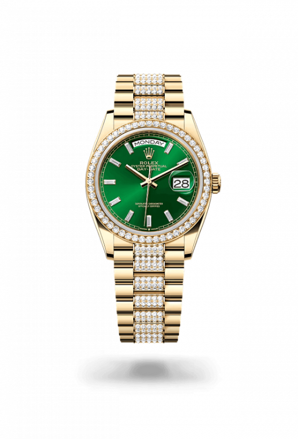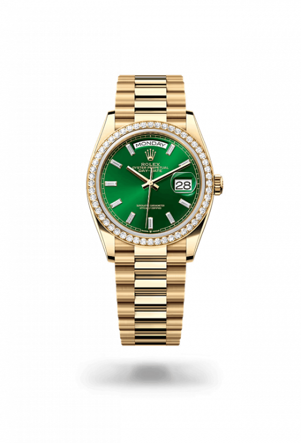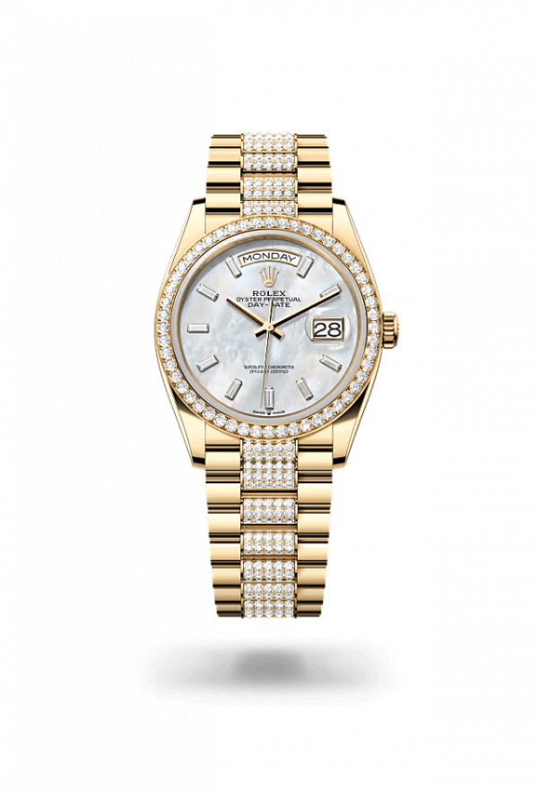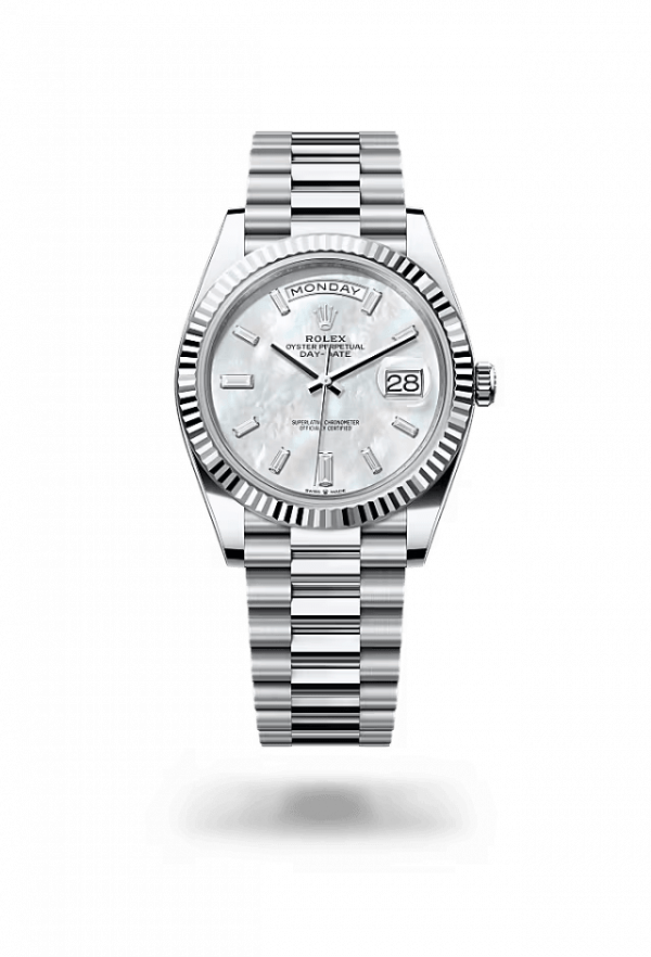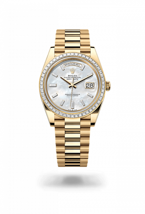The Rolex Day-Date, often called the “President’s Watch,” is the pinnacle of luxury and sophistication. Introduced in 1956, it was the first wristwatch to display both the day and date in full on its dial. A true icon, the Day-Date is exclusively crafted from precious metals like 18ct gold or platinum, underscoring its elite status.The elegant President bracelet, designed specifically for this model, offers unparalleled comfort and style, seamlessly complementing the watch’s timeless design. With a variety of dials, including mother-of-pearl and diamond-set options, the Day-Date embodies individuality and class.Favored by world leaders, visionaries, and connoisseurs, the Rolex Day-Date stands as the ultimate symbol of prestige and success.