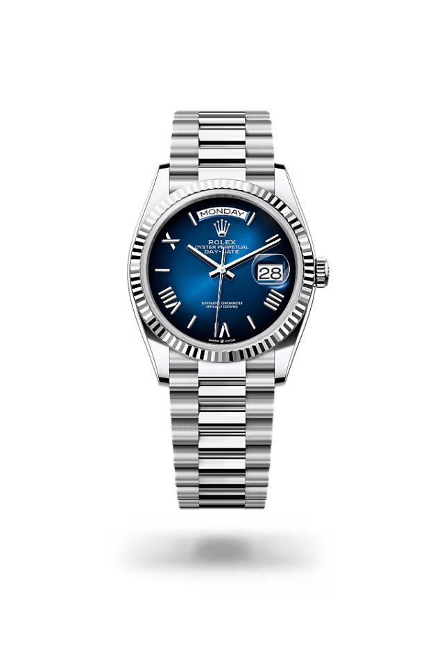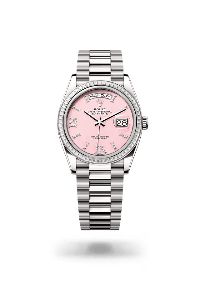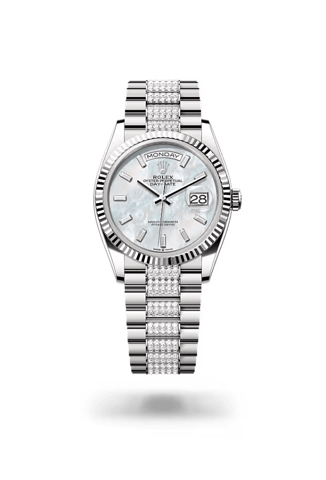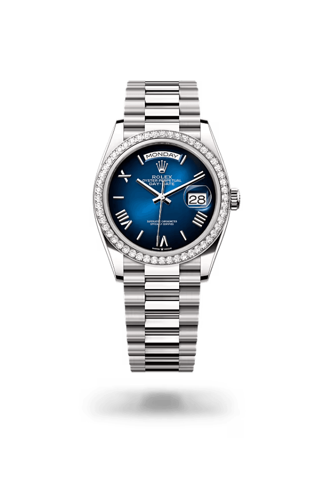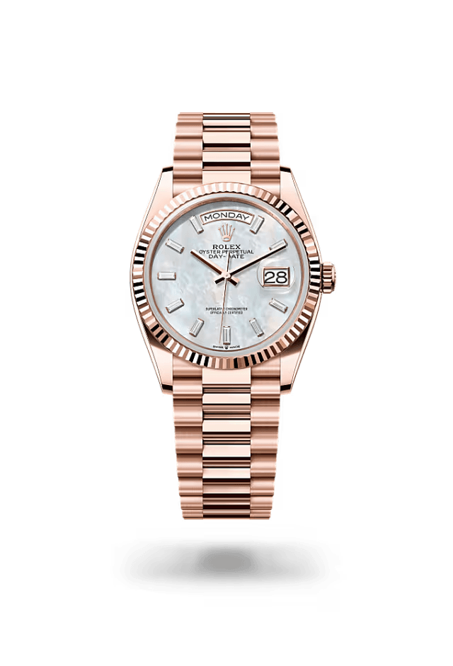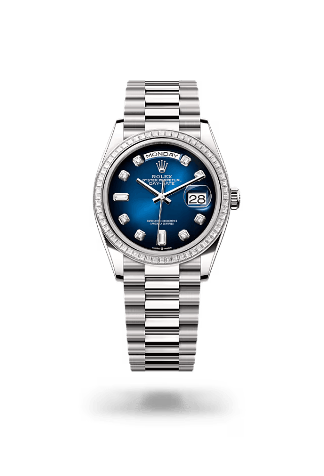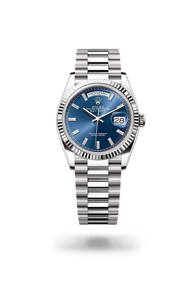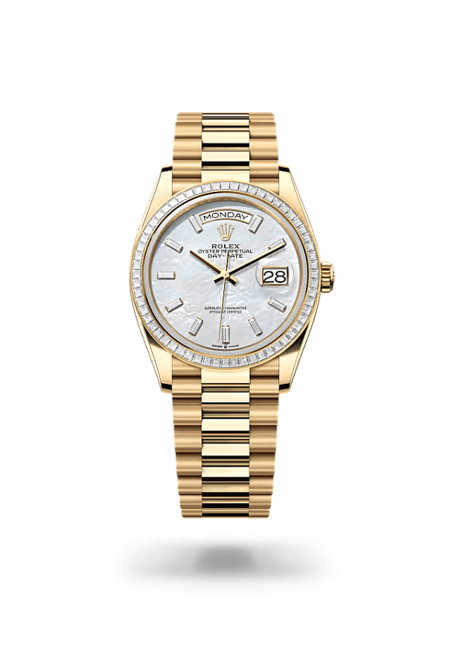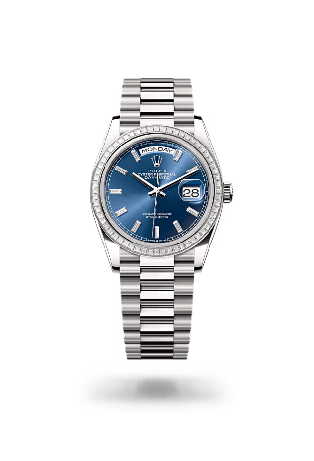 The Rolex Day-Date, often called the “President’s Watch,” is the pinnacle of luxury and sophistication. Introduced in 1956, it was the first wristwatch to display both the day and date in full on its dial. A true icon, the Day-Date is exclusively crafted from precious metals like 18ct gold or platinum, underscoring its elite status.The elegant President bracelet, designed specifically for this model, offers unparalleled comfort and style, seamlessly complementing the watch’s timeless design. With a variety of dials, including mother-of-pearl and diamond-set options, the Day-Date embodies individuality and class.Favored by world leaders, visionaries, and connoisseurs, the Rolex Day-Date stands as the ultimate symbol of prestige and success.