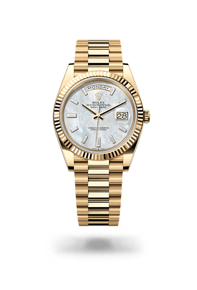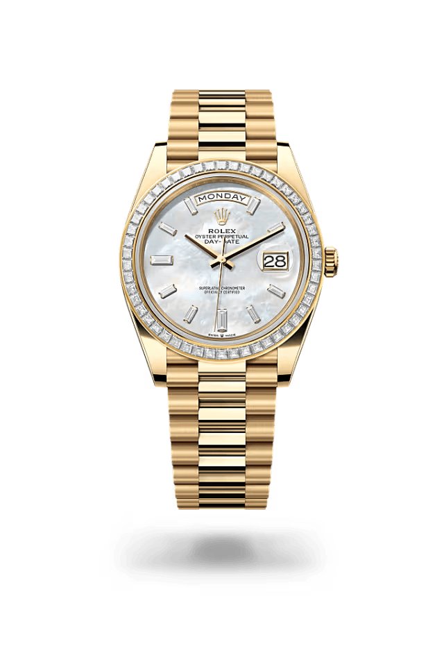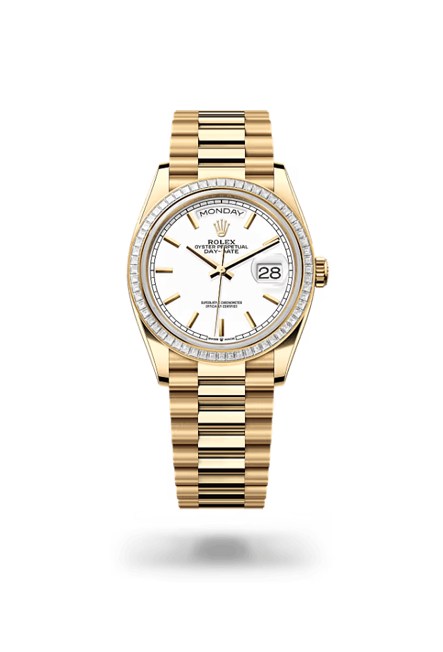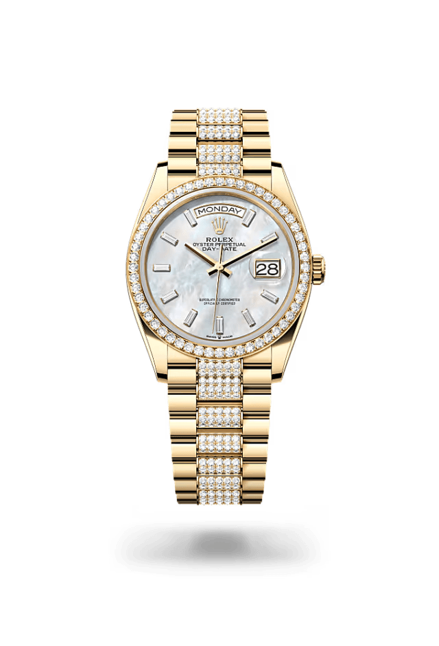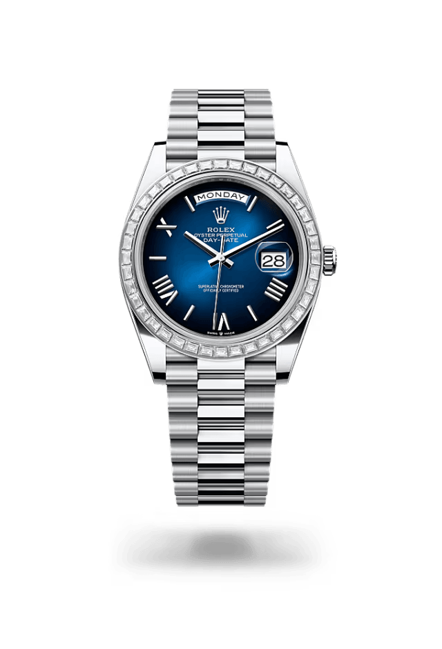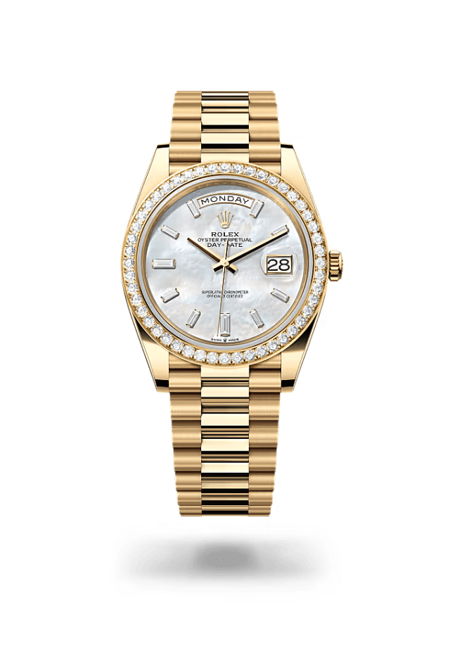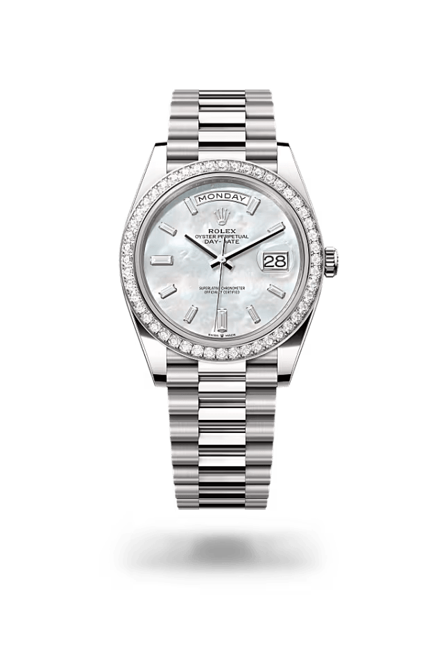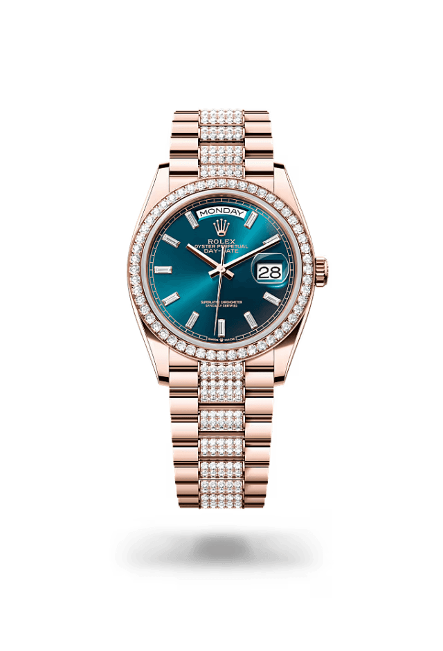 The Rolex Day-Date, often called the “President’s Watch,” is the pinnacle of luxury and sophistication. Introduced in 1956, it was the first wristwatch to display both the day and date in full on its dial. A true icon, the Day-Date is exclusively crafted from precious metals like 18ct gold or platinum, underscoring its elite status.The elegant President bracelet, designed specifically for this model, offers unparalleled comfort and style, seamlessly complementing the watch’s timeless design. With a variety of dials, including mother-of-pearl and diamond-set options, the Day-Date embodies individuality and class.Favored by world leaders, visionaries, and connoisseurs, the Rolex Day-Date stands as the ultimate symbol of prestige and success.