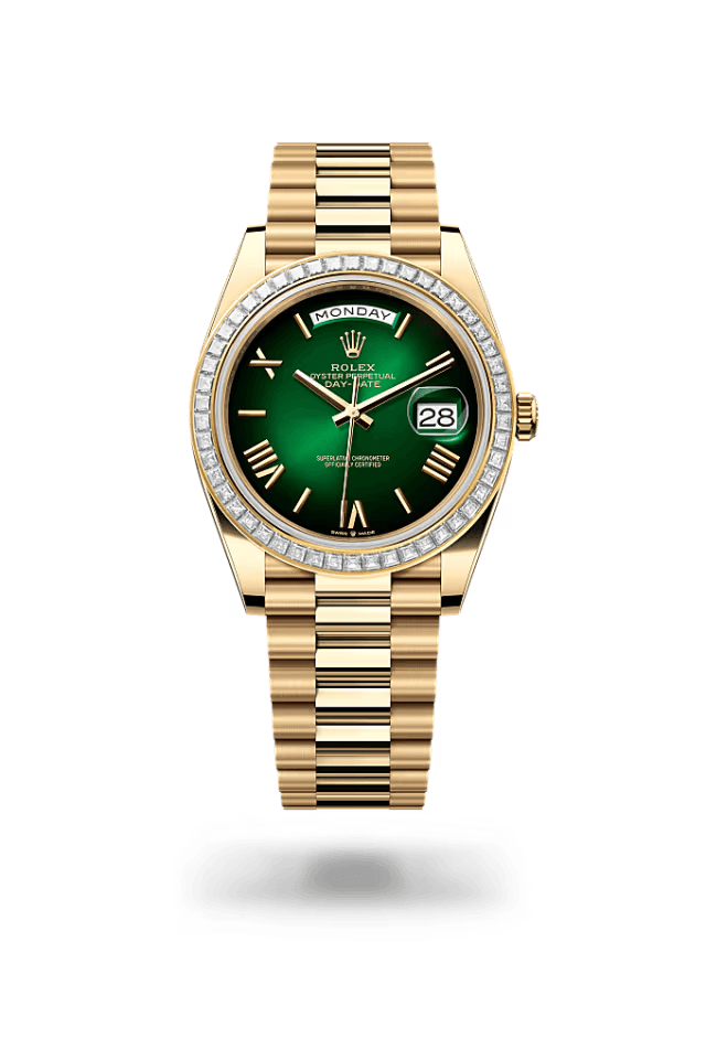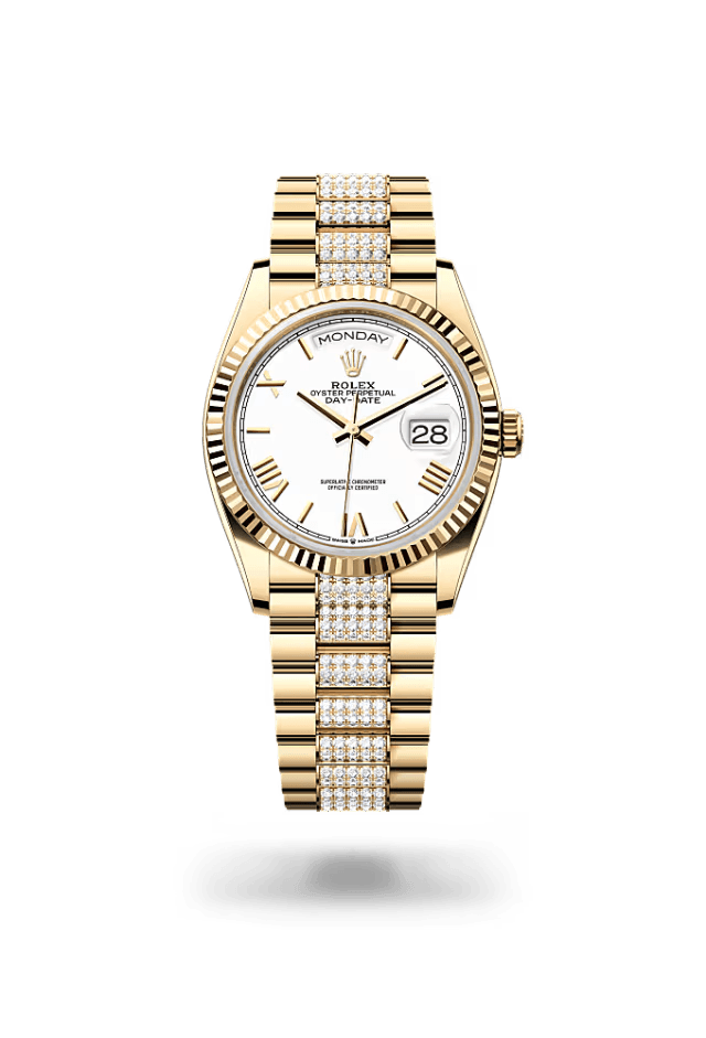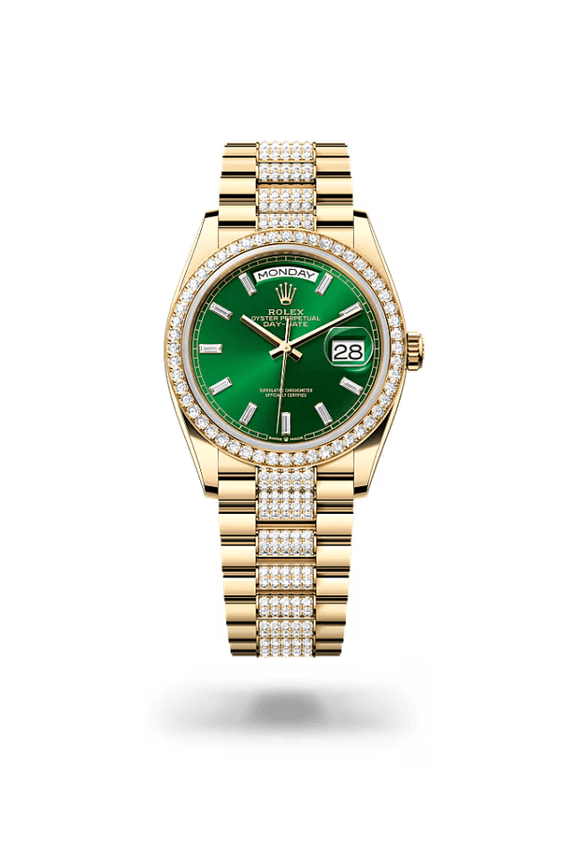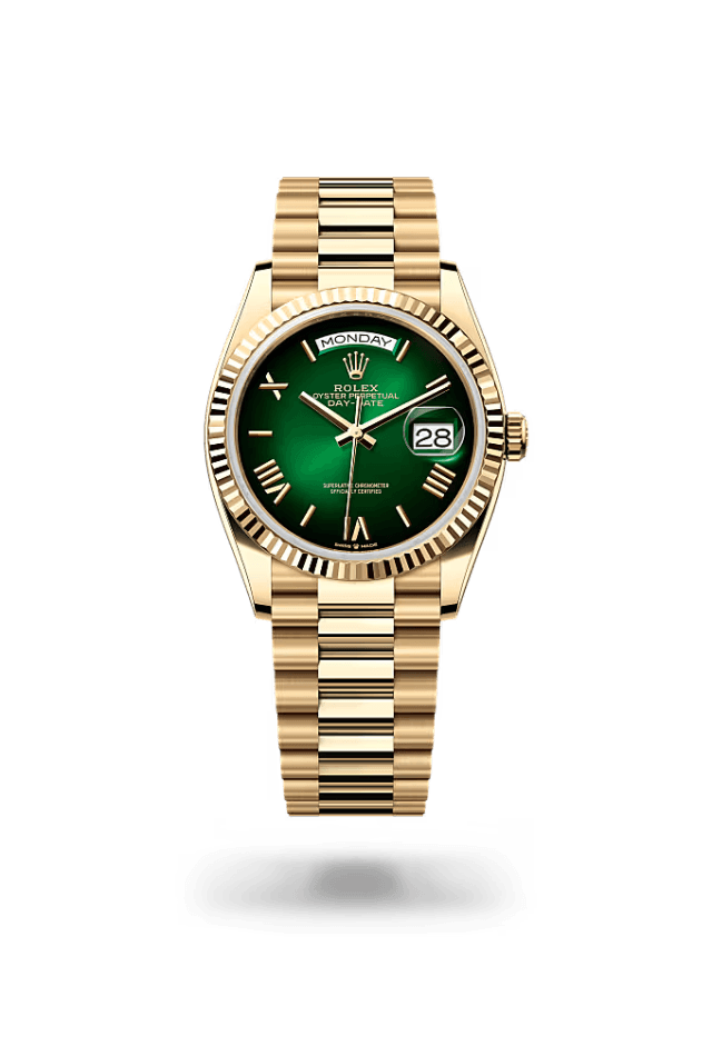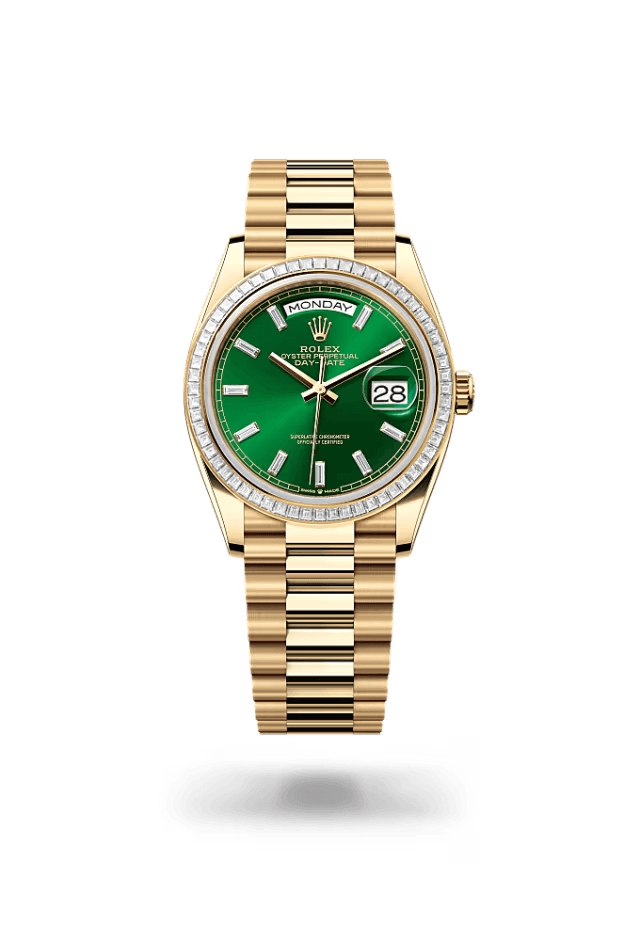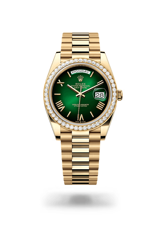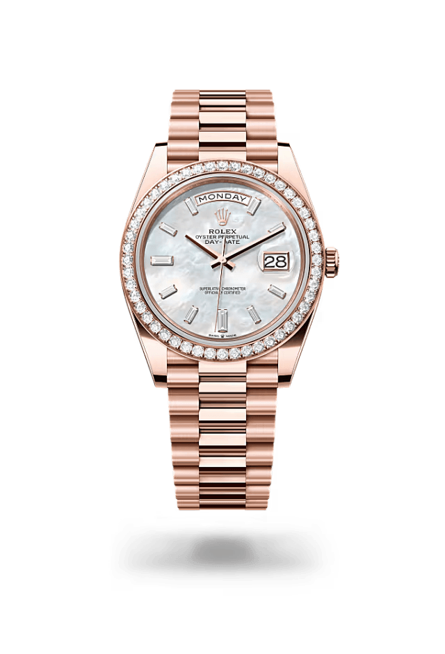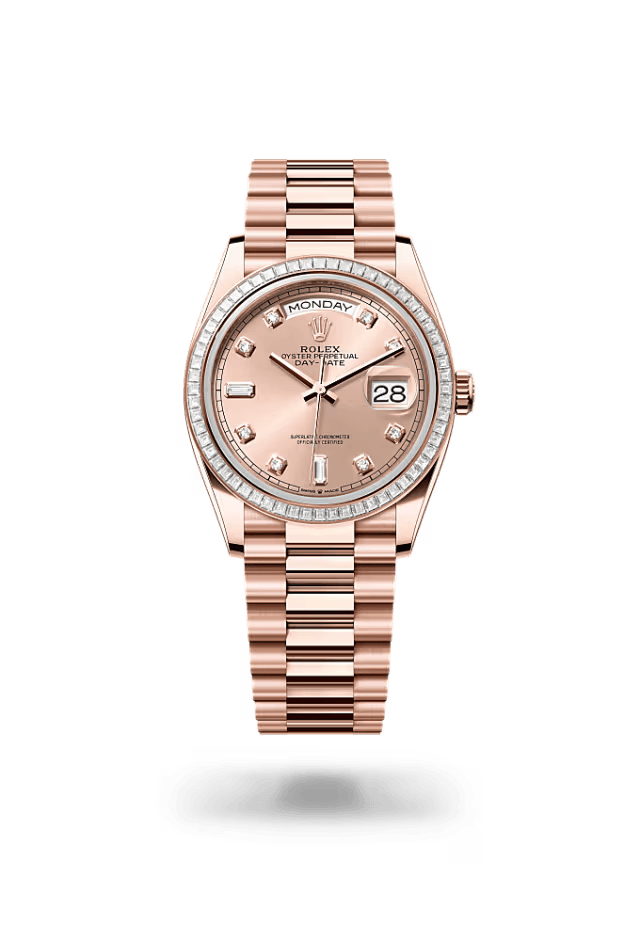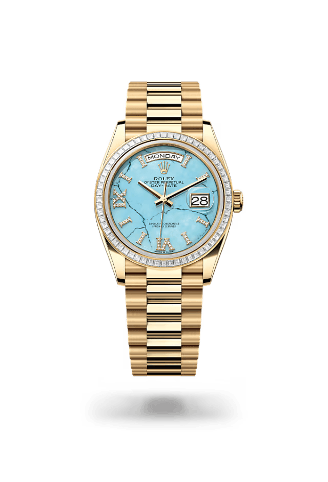 The Rolex Day-Date, often called the “President’s Watch,” is the pinnacle of luxury and sophistication. Introduced in 1956, it was the first wristwatch to display both the day and date in full on its dial. A true icon, the Day-Date is exclusively crafted from precious metals like 18ct gold or platinum, underscoring its elite status.The elegant President bracelet, designed specifically for this model, offers unparalleled comfort and style, seamlessly complementing the watch’s timeless design. With a variety of dials, including mother-of-pearl and diamond-set options, the Day-Date embodies individuality and class.Favored by world leaders, visionaries, and connoisseurs, the Rolex Day-Date stands as the ultimate symbol of prestige and success.