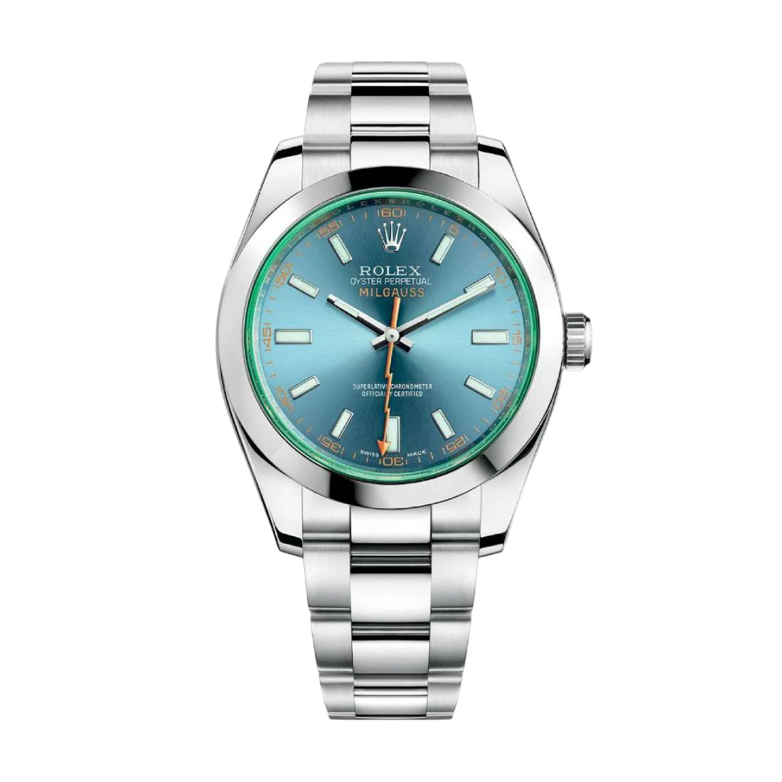 The Rolex Milgauss is a watch for the avant-garde—a fusion of science, precision, and style. Designed to withstand magnetic fields up to 1,000 gauss, it was a trailblazer for professionals working in scientific environments. Its lightning-bolt seconds hand and unique green sapphire crystal are symbols of bold innovation, while its timeless elegance ensures it stands apart in any setting. The Milgauss is more than a timepiece; it’s an icon of ingenuity and individuality.