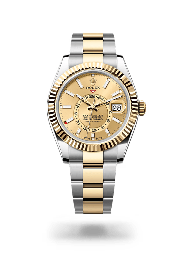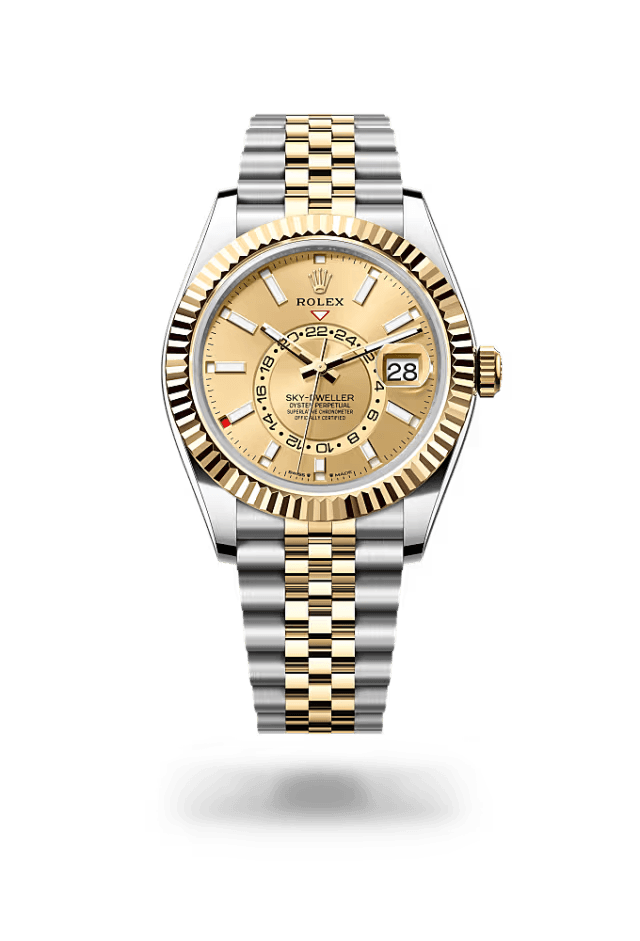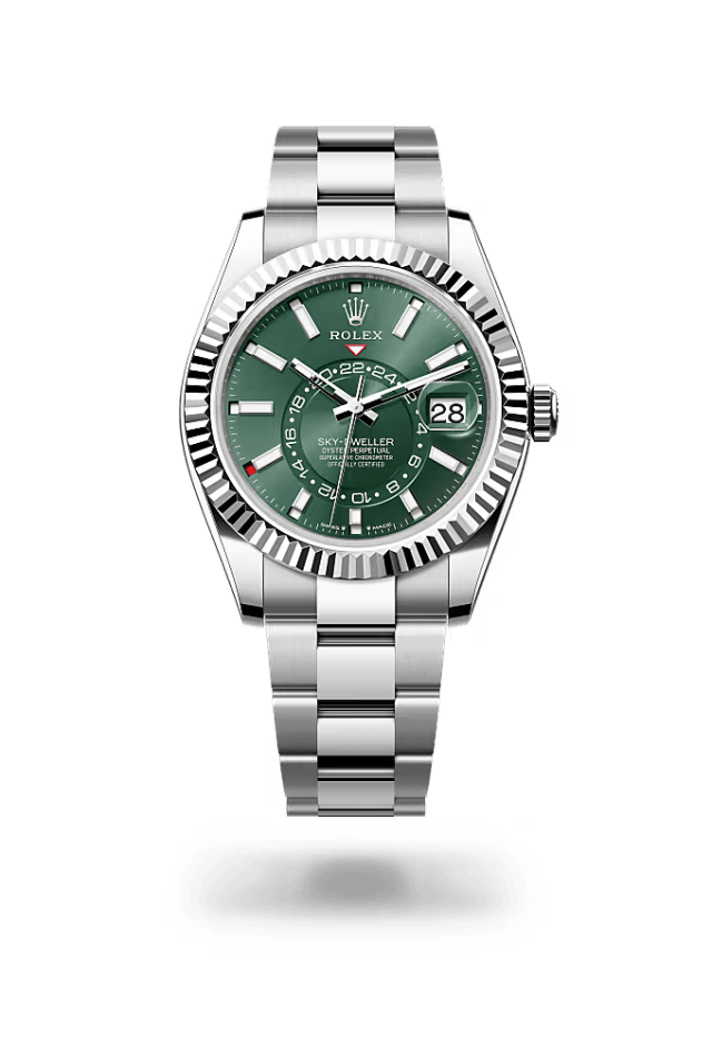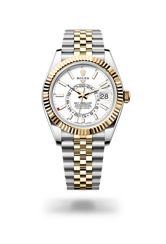 The Rolex Sky-Dweller is the epitome of innovation and luxury, crafted for the modern global traveler. Its revolutionary dual-time zone display and annual calendar with the ingenious Saros system make it an indispensable tool for navigating time with elegance. With a commanding 42mm case available in Oystersteel, Rolesor, or 18ct gold, the Sky-Dweller combines robust construction with refined aesthetics. Its off-center 24-hour disc, paired with the hallmark Ring Command bezel for seamless functionality, showcases Rolex’s unparalleled technical prowess.Whether jet-setting across continents or managing the intricacies of daily life, the Rolex Sky-Dweller ensures you do so with unrivaled sophistication and precision.